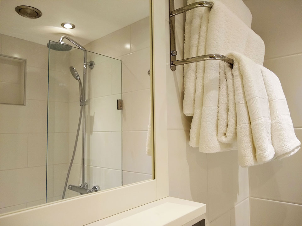 A fully-converted, self-contained living space. Consisting of an en-suite shower room, kitchenette, lounge, and bedroom.